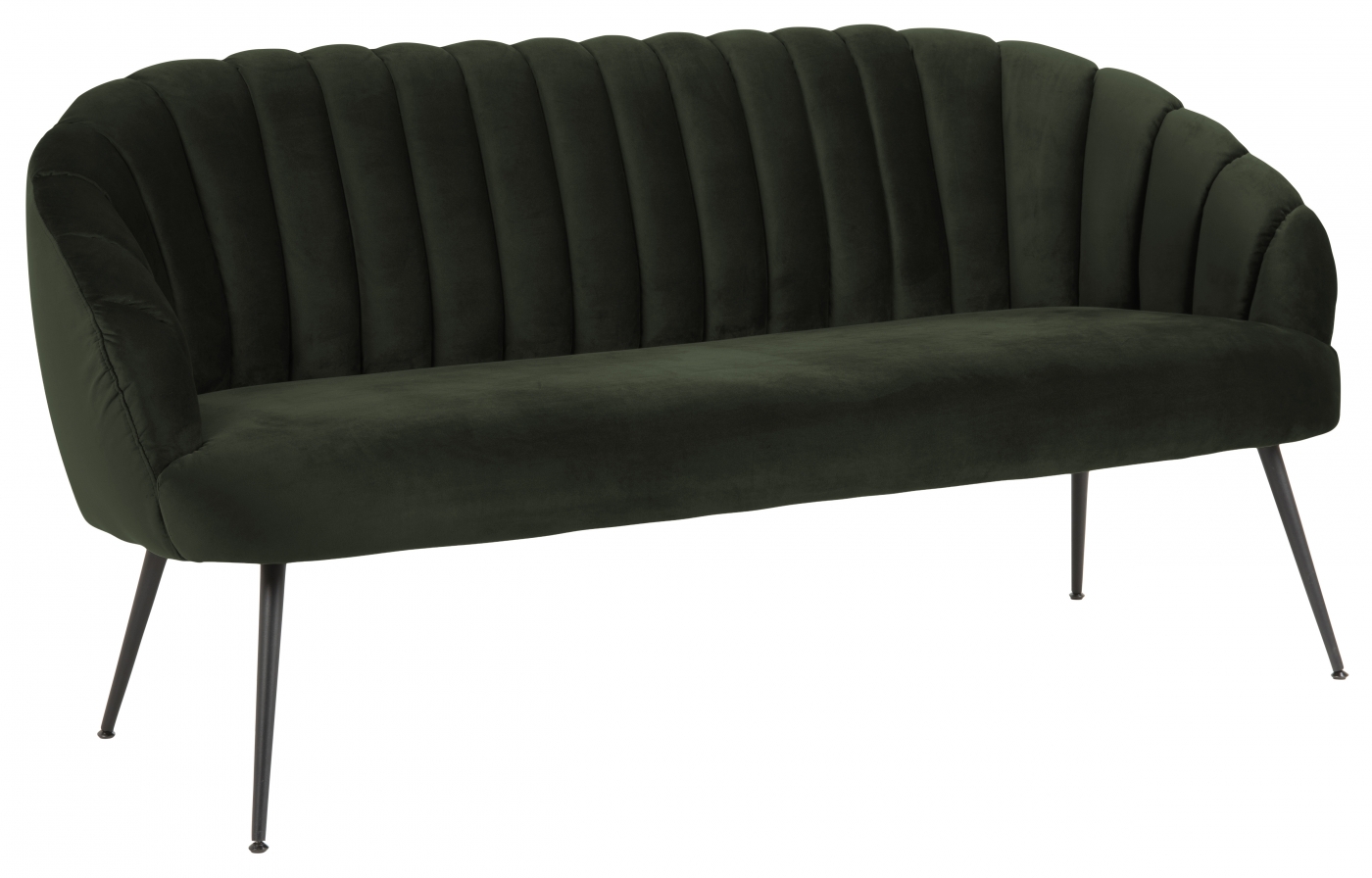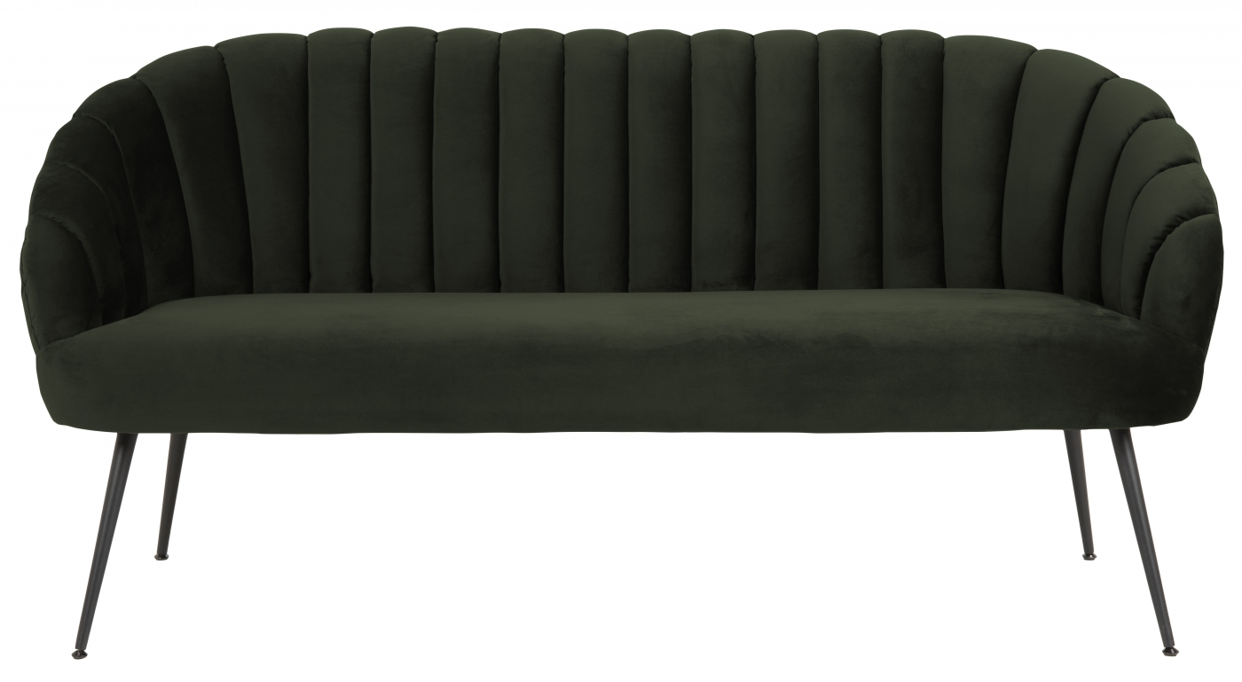 Dizajnová pohovka Daniella vás očarí svojím retro štýlom. Pohovka je čalúnená látkou v odtieni tmavo zelenej a podnož tvoria štyri oválne nohy z čierno lakovaného dreva. Pohovka Daniella je veľmi štýlovým a elegantným posedením.