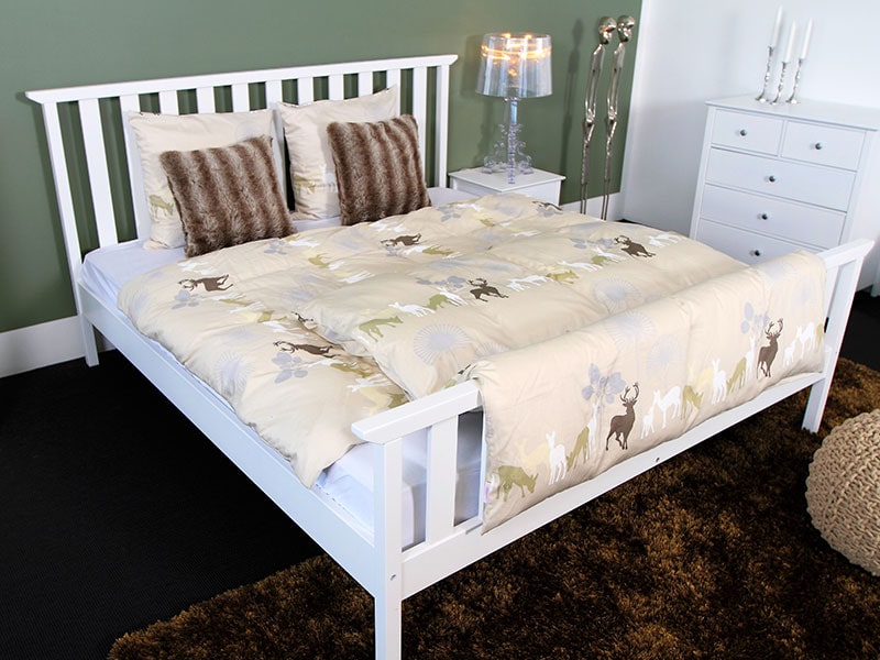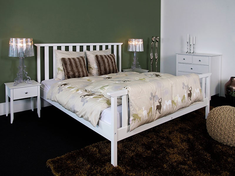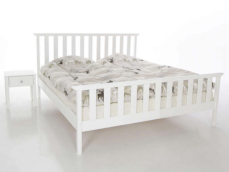 Posteľ Regina v sebe spája tradičné a moderné poňatie nábytku. Drevená posteľ v klasickom tvare sa vyznačuje elegantnou jednoduchosťou, ktorú podčiarkuje matný biely lak. Užívajte si čistotu dizajnu a prevedenie pri zaslúženom odpočinku. Posteľ sa dodáva bez roštov, matracov a lôžkovín.