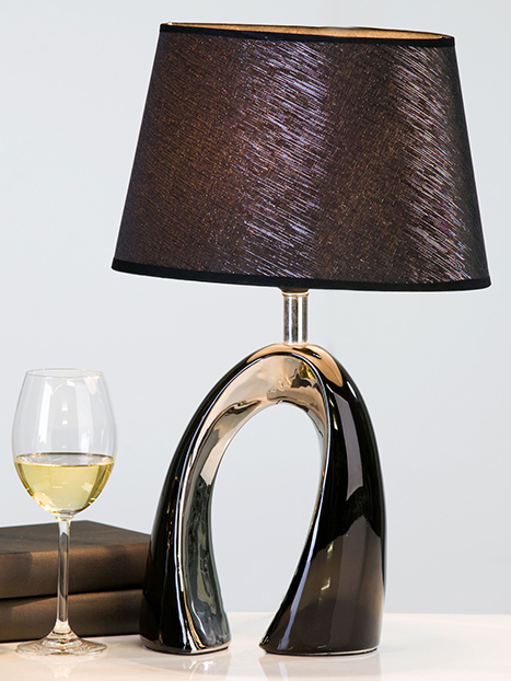 keramická podnož glazovaná v čiernej a stribornej farbe, textilné tienidlo