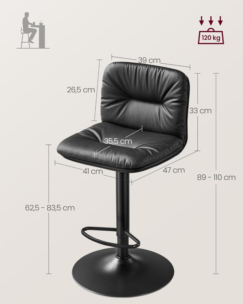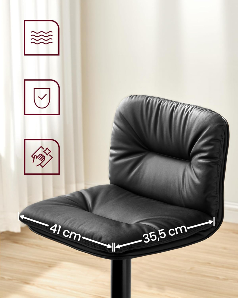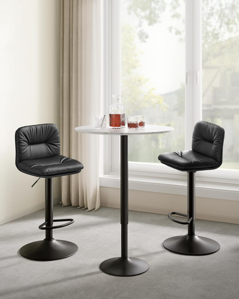 Táto sada 2 barových stoličiek dodá každej izbe exkluzívny vzhľad a zaujme nielen skvelými vlastnosťami sedenia, ale aj moderným dizajnom. Barové stoličky umožňujú otáčanie o 360 ° a okrem toho sú stoličky výškovo nastaviteľné a vďaka stabilným kovovým nohám ponúkajú bezpečné sedenie. Rámy sú tiež vybavené stúpačkami a chráničmi podlahy, ktoré vám zaistia pohodlné sedenie aj niekoľko hodín.