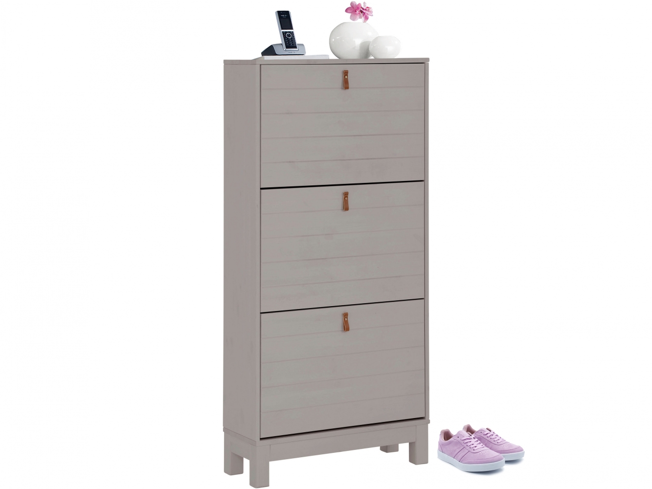 Moderný botník Lous sa vyznačuje inšpiráciou vo vidieckom štýle a kvalitným použitým materiálom, masívnym drevom. Botník disponuje tromi vyklápacími policami, do každej police je možné uložiť až 12 párov topánok. Pre svoju typickú štylizáciu sa botník hodí skôr do klasických a vintage interiérov, do ktorých vnesie jemnosť a eleganciu.
