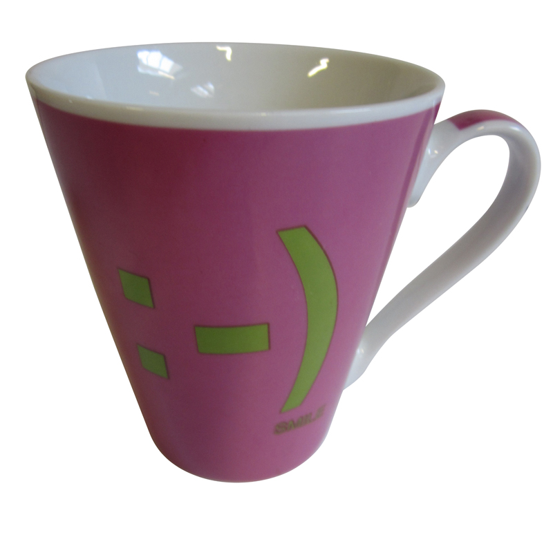 Porcelánový hrnček s uškom Smajlík Vám zdvihne náladu pri každom pití čaju alebo kávy. Sýta ružová farba a vtipná potlač Vás potešia hneď z rána. Hrnček sa výborne hodí k vankúšikom so smajlíkom z rovnakej série a taktiež vynikne na jedálenskom stole v kombinácii s farebným prestieraním.