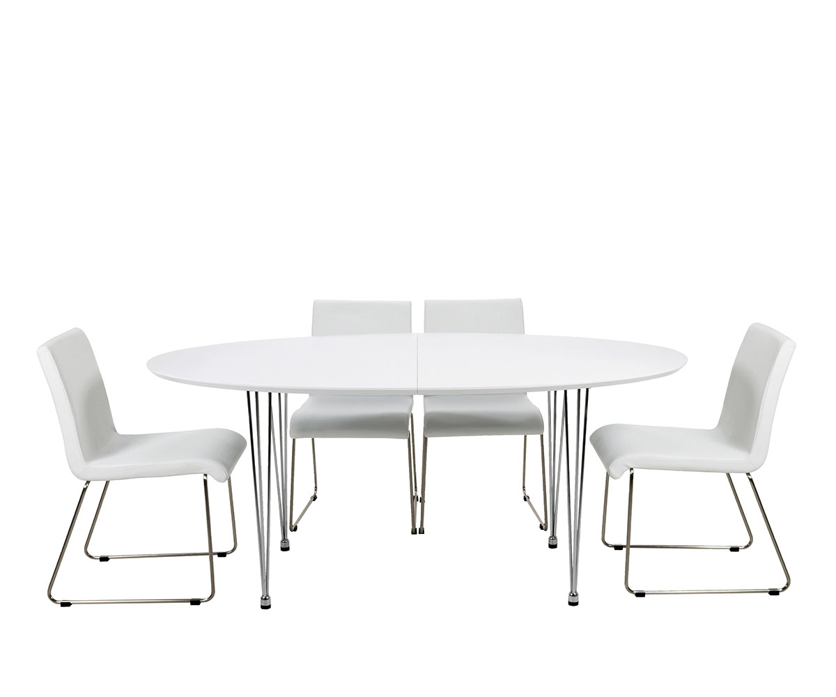 Jedálenský stôl Ballet, 270 cm je moderný rozkladací jedálenský stôl s prvkami retro štýlu. Vďaka kovovým nohám, ktoré akoby boli tvorené silnými drôtmi, pôsobí elegantným a vzdušným dojmom.