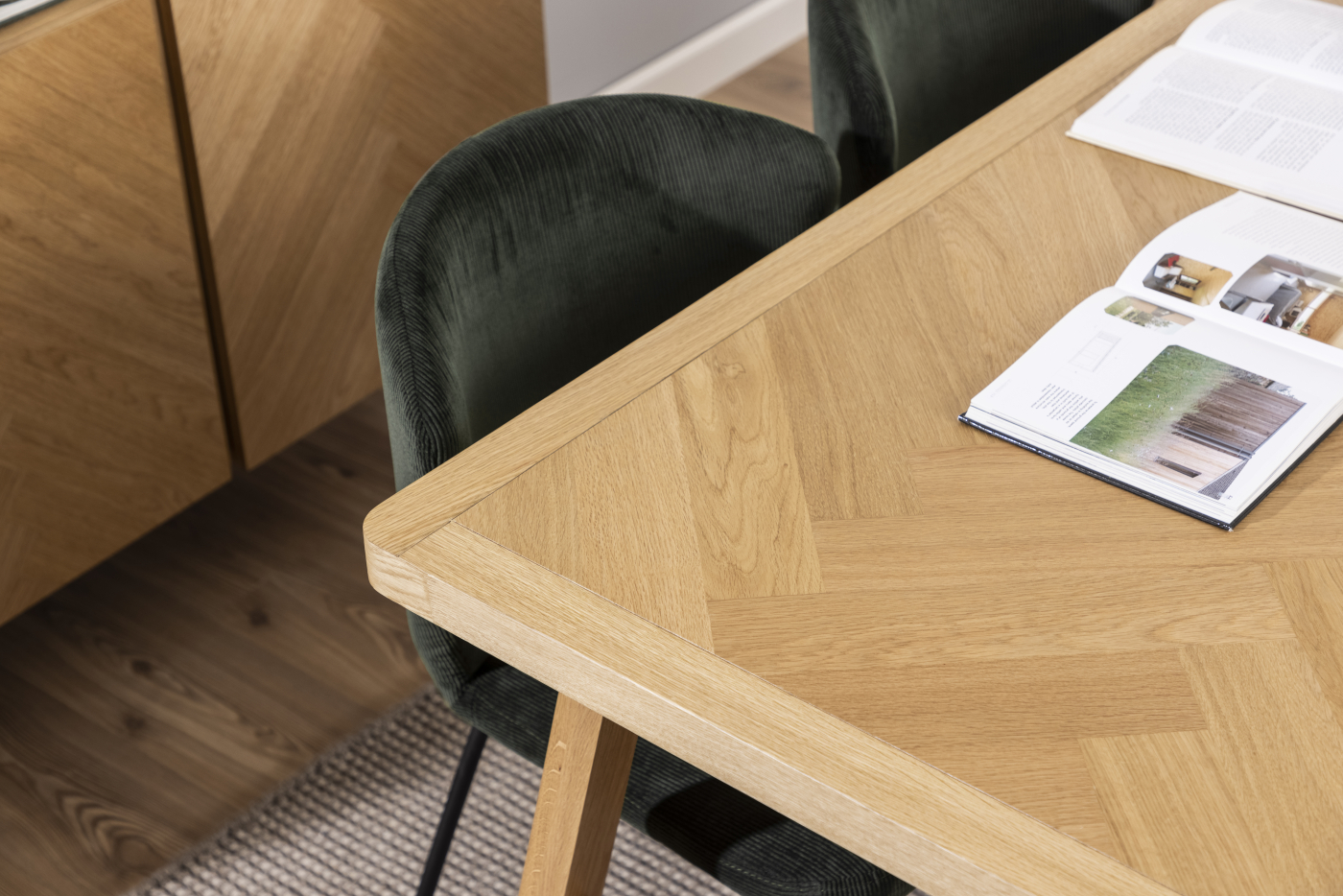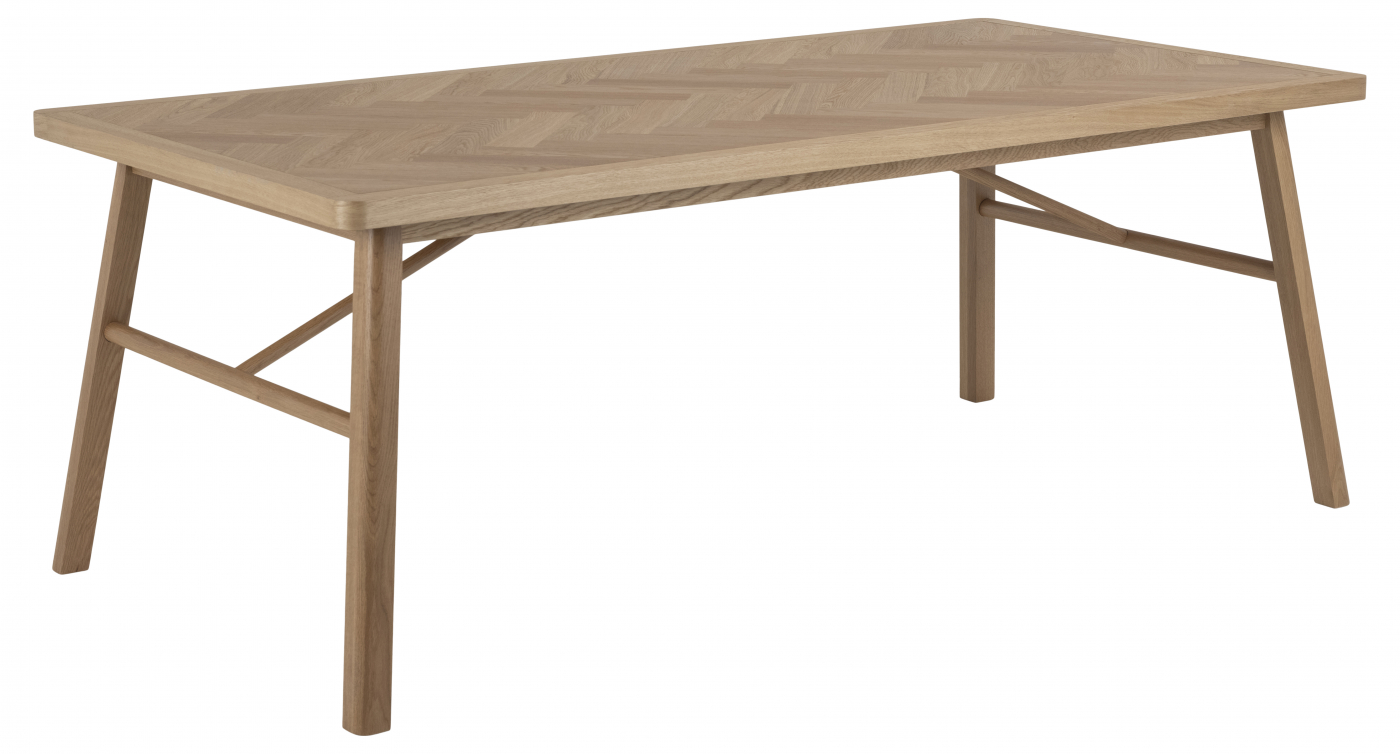 Jedálenský stôl Galway je zástupcom škandinávskeho štýlu. Celodrevený stôl poteší každého milovníka štýlového nábytku. Priestrannú stolovú dosku zdobí štýlový vzor rybej kosti.
