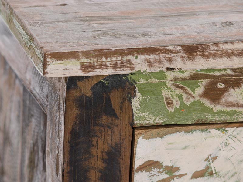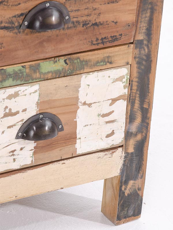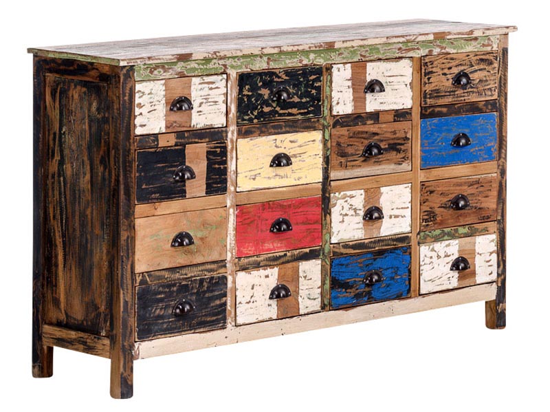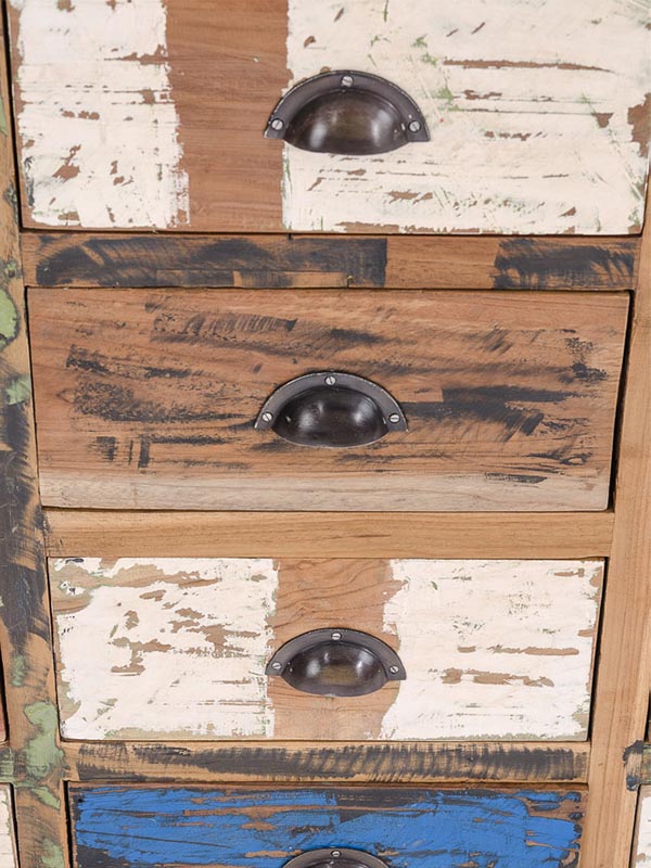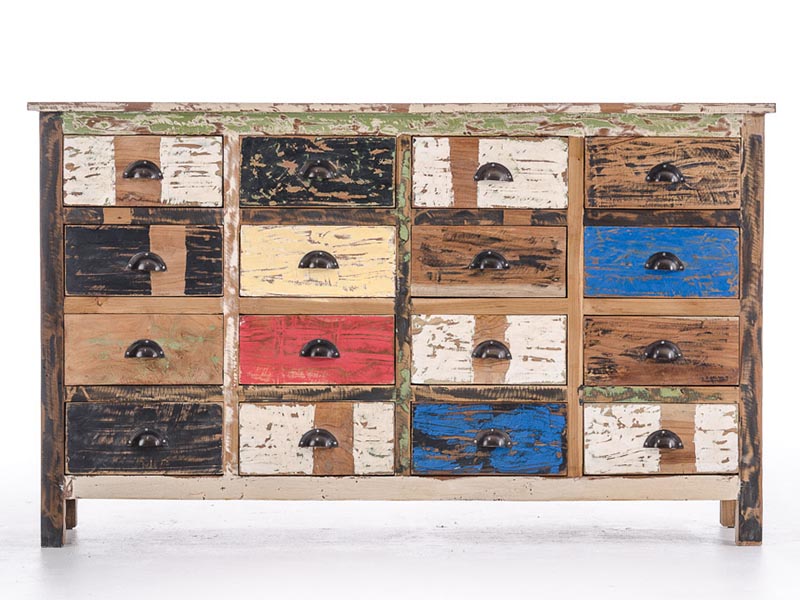 recyklované masívne teakové drevo lakované rôznymi farbami, patinované, 16x zásuvka s kovovou úchytkou