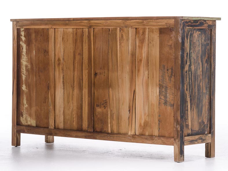 Komoda Larisa poskytuje skutočne veľa úložného priestoru, je totiž vybavená 16 zásuvkami. Tento praktický kus nábytku môžete využiť buď ako bielizník v spálni, ako komodu v obývačke alebo ako príborník v kuchyni. Komoda Larisa na prvý pohľad zaujme svojím ojedinelým vzhľadom. Je totiž vyrobená z masívneho teakového dreva, ktoré bolo už skôr používané na lodiach a v starých domoch a následne sa recyklovalo. Preto na výrobu tejto komody nemusel byť vyrúbaný ani jeden jediný strom! Komoda Larisa je opatrená výraznou patinou, vďaka ktorej vyzerá, akoby bola lakovaná množstvom rôznych farieb, ktoré sa vplyvom zubu času ošúchali.