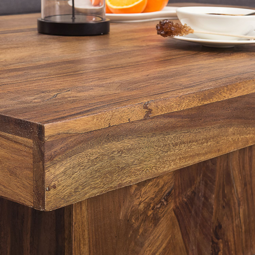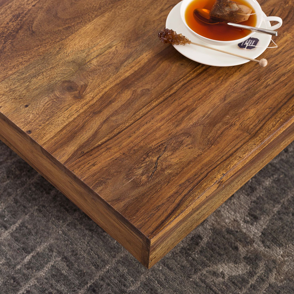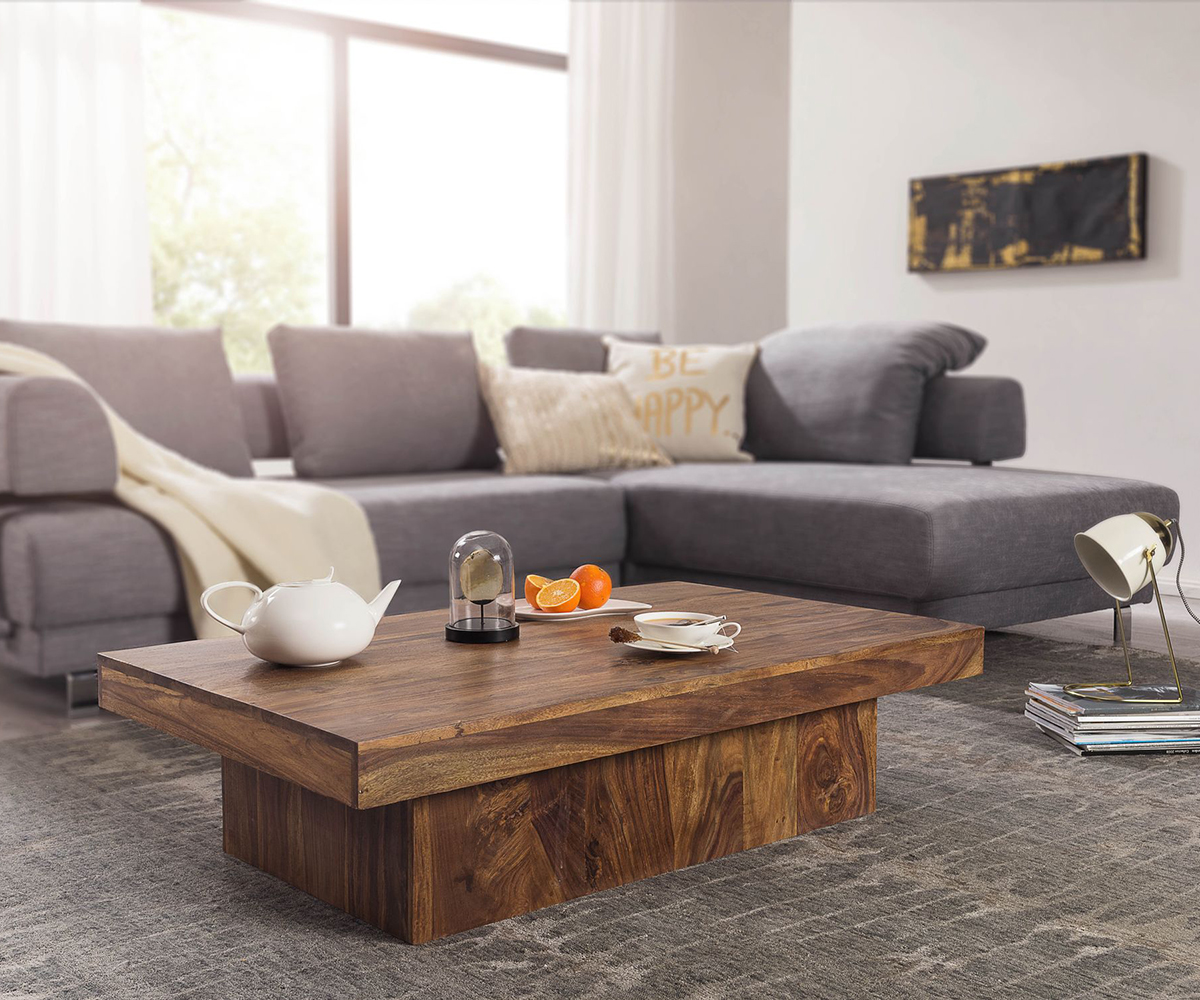 Luxusný konferenčný stolík z kolekcie nábytku Mumbai z dreva Sheesham poskytuje dostatok úložného priestoru v obývacej izbe dokonca aj pri veľkej rohovej pohovke. Jeho exkluzívny vzhľad podporí dojem jedinečnosti a originality vášho interiéru.