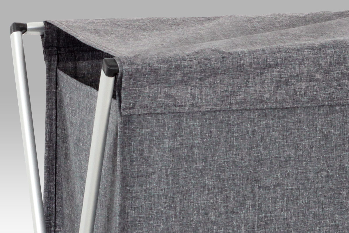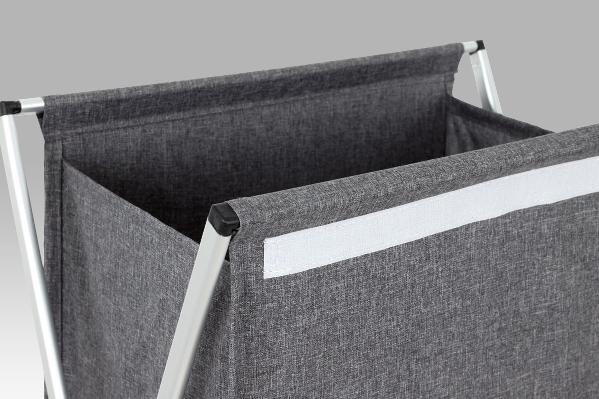 Kôš na bielizeň Vivien je užitočným doplnkom do vašej domácnosti. Je vyrobený z eloxovanej hliníkovej konštrukcie v tvare X s čiernymi plastovými spojkami a s látkovým košom sivej farby. Kôš má odklápacie látkové veko a je veľmi skladný.
