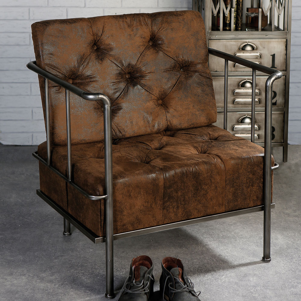 Kreslo s kovovou konštrukciou Factory je originálny dizajnový nábytok v štýle vintage. Syntetická koža a kovová antracitová konštrukcia = dokonalá kombinácia do industriálneho interiéru a pre milovníkov vintage.