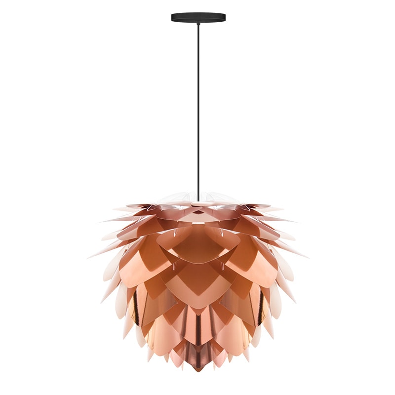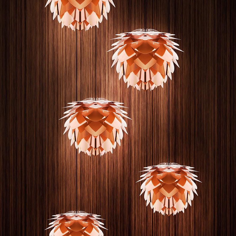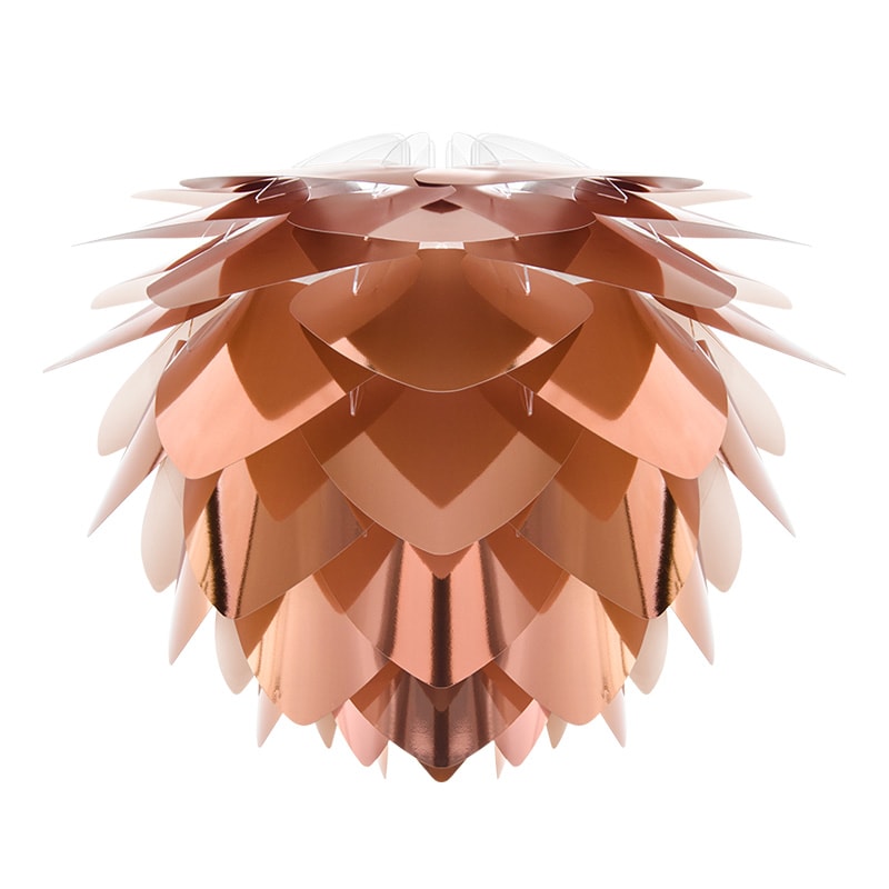 Populárny luster Silvia v medenom dekore má odteraz malú sestričku. Je ideálny pre kreatívne usporiadanie vo viacerých kusoch - zaveste ich niekoľko v rôznych výškach v rohu vašej obývačky alebo v rade nad vaším jedálenským stolom. Ak sa však rozhodnete svetlo nevašať na strop, doplňte ho akoukoľvek vhodnou podnožou a razom získate stolnú či stojaciu lampu. Medená Silvia mini zdieľa všetky dobré gény so svojou väčšou sestrou, tým pádom je teda tiež vyrobená z nezničiteľného polykarbonátu a polypropylénu, ktorý je šetrný k životnému prostrediu, a je navrhnutý tak, aby ste si ho mohli doma zložiť za menej než 15 minút. Navyše je dodávaný v elegantnej ultra-tenkej darčekovej krabici.
