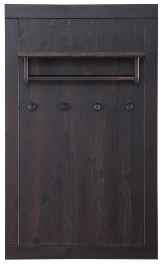 Nástenný vešiak Ohaia v rustikálnom dizajne vám ponúkne 4 háčiky a oceľovú týč na zavesenie odevov. Vyrobený je z masívneho borovicového dreva v hnedej farbe. Hodí sa do predsiene či chodby.