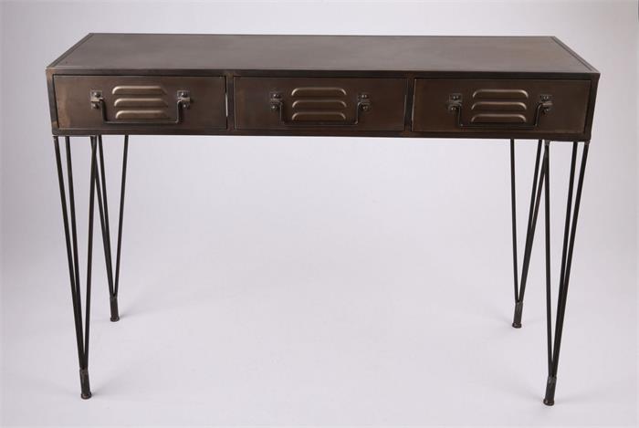 Kovový stôl Enjoyed s tromi zásuvkami je so svojou hĺbkou 40 cm koncipovaný ako odkladací stôl stojaci pri stene. Neváhajte ho však použiť aj pre svoj pracovný kútik vo svojej alebo v obývacej izbe.