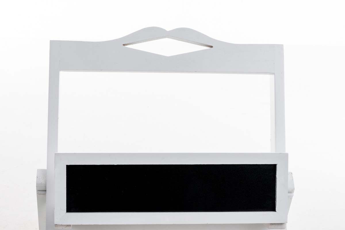 drevo je lakované bielym lakom, cez ktorý miestami presvitá drevo, vyzerá ľahko opotrebovane a pôsobí veľmi osobite