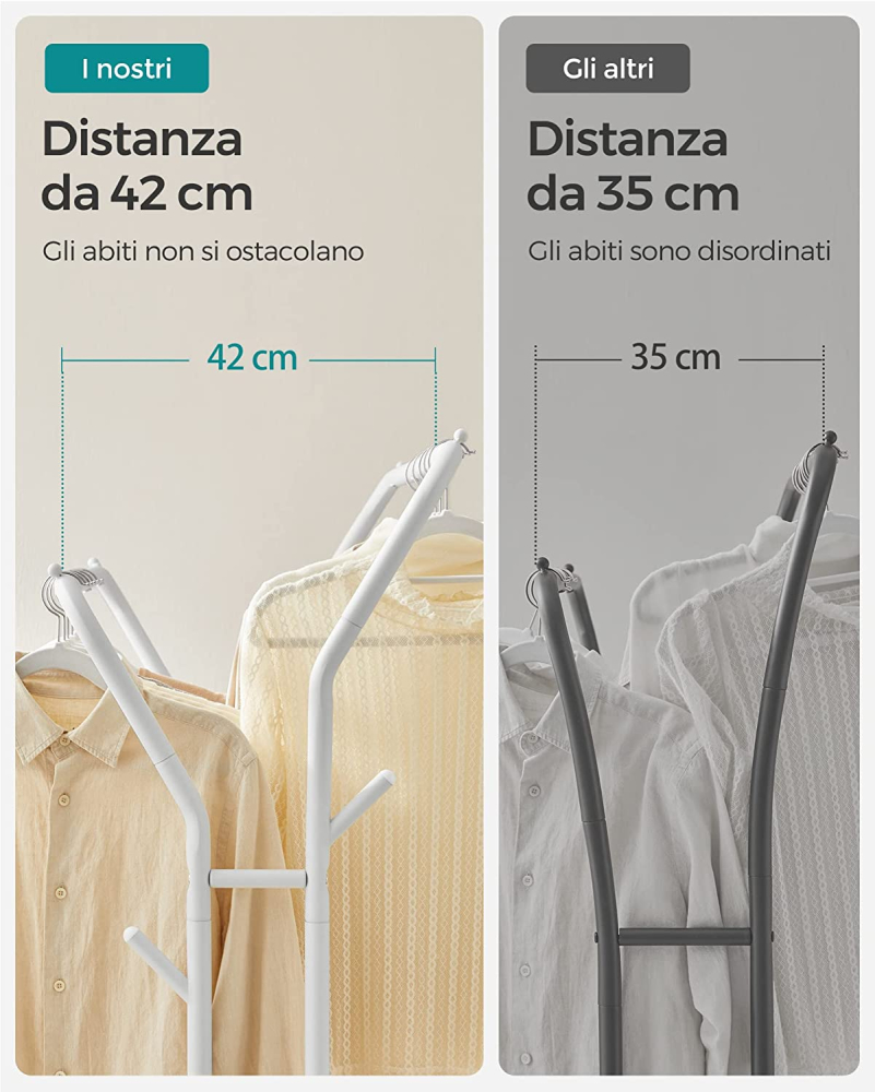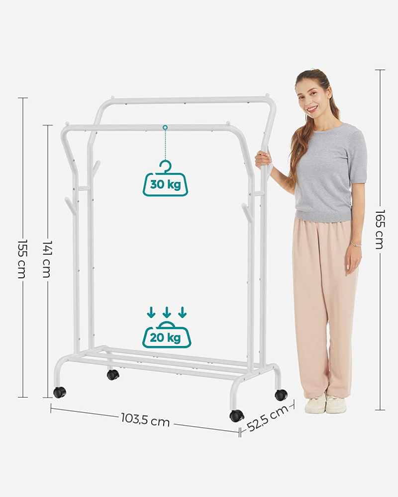 Stojan na oblečenie Nikals je moderný a jednoduchý stojan, ktorý disponuje závesnými tyčami a odkladacou policou na obuv. Bude vám skvelým pomocníkom do spálne či šatne.