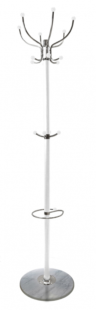 Stojanový vešiak Opium je praktický interiérový doplnok, vhodný predovšetkým do predsiene či chodby. Základňa vešiaka je mramorová a samotný vešiak je laminovaný kov. Vhodné umiestenie je aj do rohu miestnosti, ktorý nebude problémom. To všetko vďaka možnosti otáčania hornej časti vešiaka (až 12 otočných háčikov!). Ópium je vešiak s 3 úrovňami háčikov, vďaka ktorým pokrývky hlavy, kabáty, bundy, šály a ďalšie kusy oblečenia už nebudú zapĺňať stoličky ani kreslá v obývacej izbe. Vešiak v spodnej časti má navyše madlo, vďaka ktorému je Ópium aj stojanom na dáždniky.