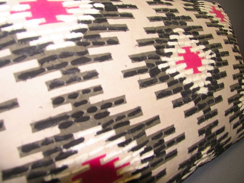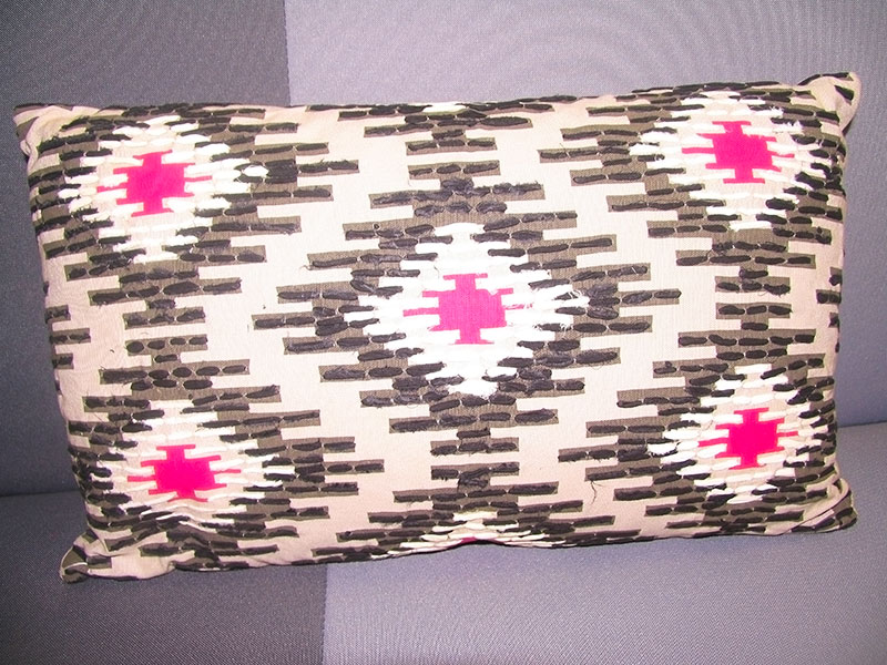 100% bavlna, potlač a výšivka, zips, zadná strana vankúša čierna